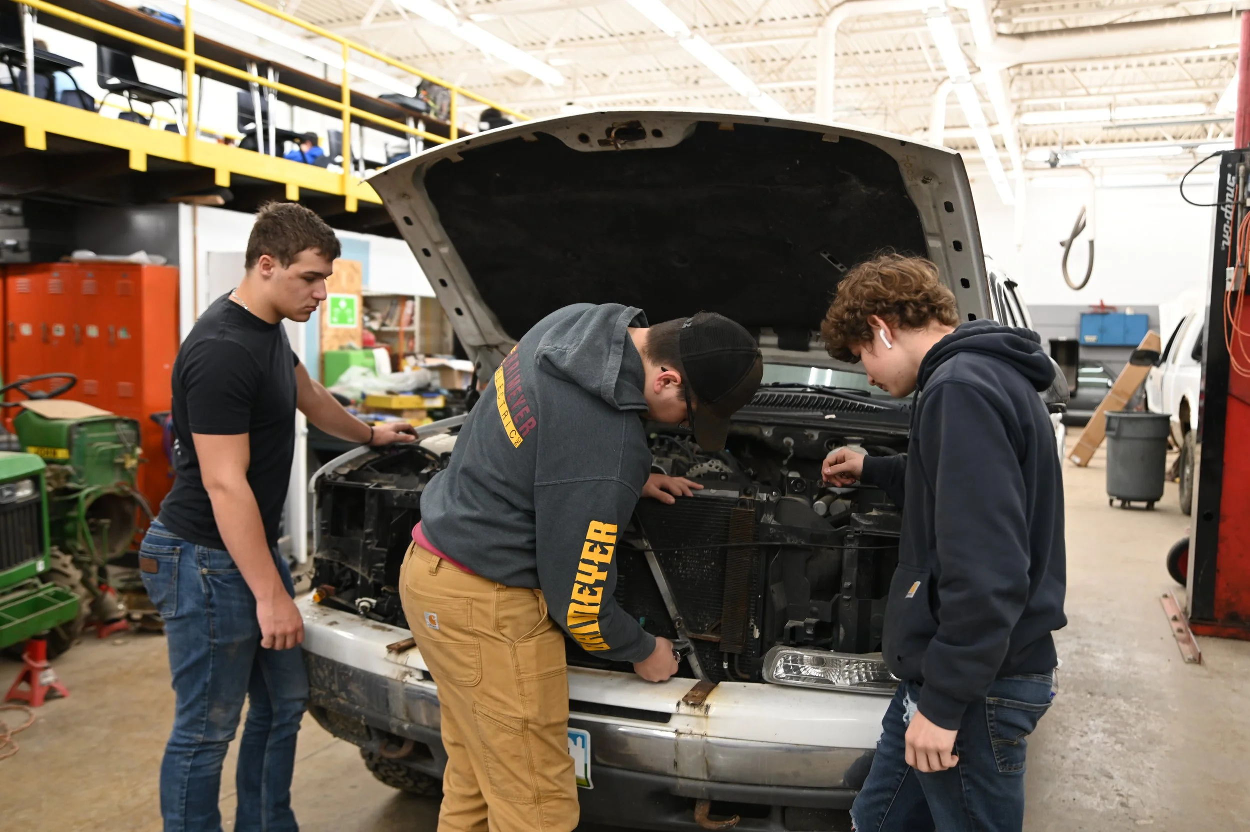 The Automotive Technology program is an overview of the entire automobile. Each year starts with an introduction/refresher of both tools and shop safety. This includes an OSHA 10-hour course for 1st year students. Then, we will visit all the major systems on the vehicle. This means covering but not limiting to Heating/AC, Electrical, Brakes, Steering/Suspension, Engines, Service Procedures/Work Orders, etc. Students will have exposure to a range of vehicles in the shop doing “hands -on” learning over all of these systems.